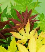 Het bijzondere aan de Japanse esdoorn 3 kleuren festival is dat in één pot, drie verschillende esdoorn soorten groeien. De verschillende bladkleuren zorgen voor een waar spektakel in tuinperken en bloempotten. De bladeren van dit esdoorn trio wisselen in het seizoen en afhankelijk van het jaargetijde van kleur, waardoor ze altijd interessant blijven. De waaieresdoorn schoonheden van deze Japanse esdoorn 3 kleuren festival (Acer palmatum) zijn indrukwekkend door hun gracieuze uiterlijk en het vuurwerk van kleuren dat het blad vanaf de lente tot in de herfst ontvouwt en met de herfstkleuring zijn hoogtepunt bereikt. De plant groeit solitair in het perk en in borders of in een pot op het balkon en terras tot een schilderachtige mooie struik!