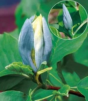 De bloemen van deze rariteit zijn van een intensief blauw, absoluut uniek voor een magnolia. Hoe verder de bloemen open gaan hoe meer het blauw in een goudgeel verandert.
